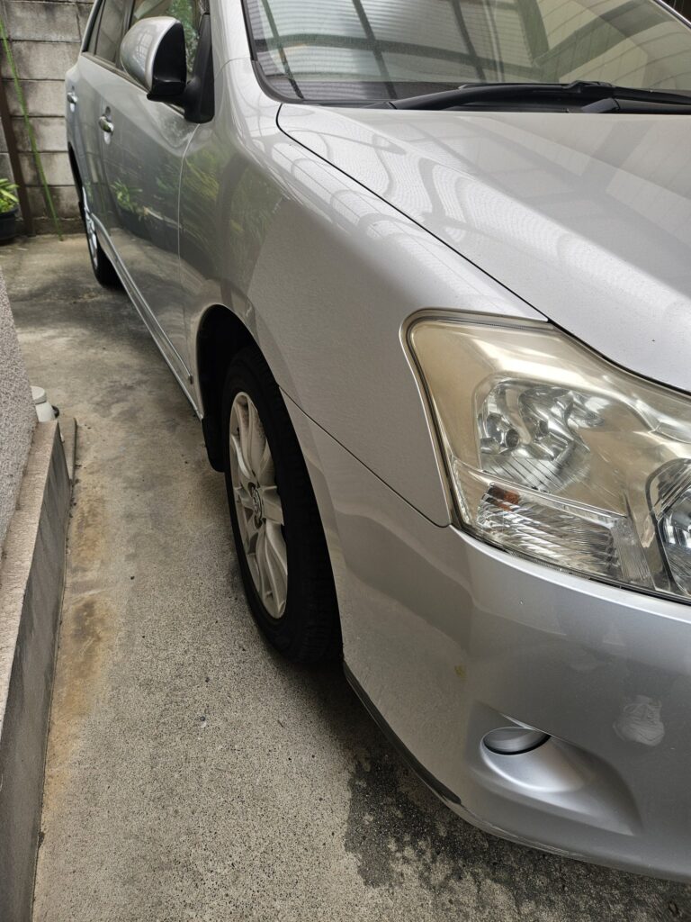 ぶつけて凹んでる車に